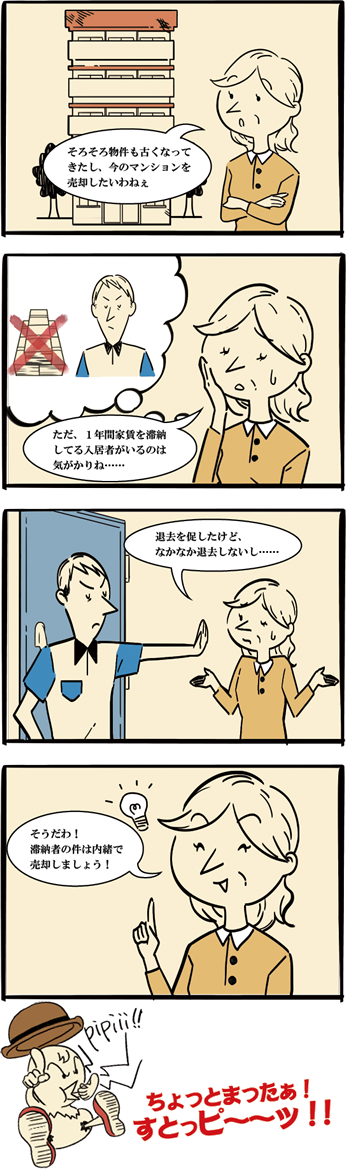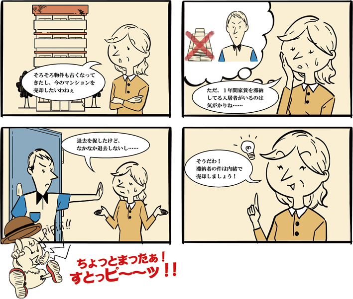 現在、所有しているマンションの売却を検討します。実は1年程滞納している入居者がいて困っています。